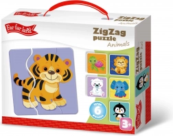 Puzzle ZigZag brenda Far Far Land nude zabavu i edukativnu vrijednost zahvaljujući cik-cak rezanju i šarenim motivima životinja. Pakiranje sadrži 6 slika.