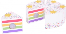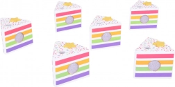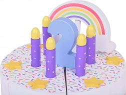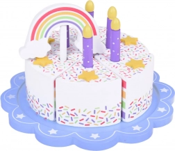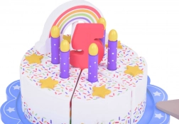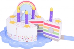 Na vrhu kolača nalazi se odvojiva šarena duga koja cijelom setu daje poseban čar. Svaki komad kolača ima mjesto za svjećicu, što ga čini savršenim izborom za igru rođendanske proslave.
