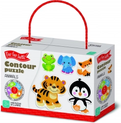 Far Far Land Puzzle životinje – obrisne je set koji sadrži 5 zanimljivih slagalica osmišljenih za djecu od 3 godine. S živopisnim bojama i jedinstvenim dizajnom nudi više od obične slagalice.