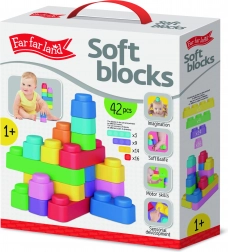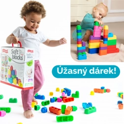 Komplet Mekih 42 Blokova od marke Daleko Daleko Zemlja donosi sjajnu zabavu za djecu zahvaljujući svojim šarenim mekim blokovima od sigurnog materijala.