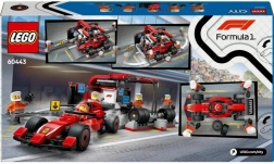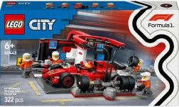 U kompletu je crveni F1 Ferrari, minifigurica vozača i četvero članova ekipe za autentične scenarije utrka i timski rad.