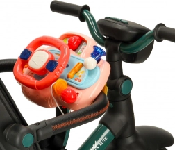 Igračka je dizajnirana s naglaskom na razvoj: podupire finu motoriku, koordinaciju oko–ruka i osjetilnu percepciju. Praktična pričvrsna traka omogućuje brzo pričvrstiti volan na kolica ili krevetić, tako da zabava može nastaviti gdje god se nalazili.