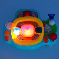 Stilski volan za najmlađe ima preglednu ploču s malim autićem, tipkama i polugicama koje potiču djecu na istraživanje. Zvučni i svjetlosni efekti vjerno oponašaju stvarnu vožnju, a zabavu upotpunjuju vesele melodije. Roditelji će cijeniti mogućnost podešavanja glasnoće.