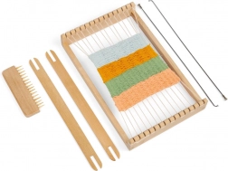 Ovaj drveni tkalački stan je idealan za djecu koja žele isprobati ručno tkanje tekstila. Izrađen od visokokvalitetnih materijala s FSC4; certifikatom, osigurava održive šumarske prakse. Alat pomaže u razvoju ne samo spretnosti, već i koncentracije i strpljenja.