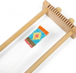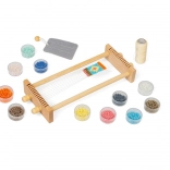 Ovaj tkalački stan za djecu iz radionice Bigjigs Toys savršen je izbor za razvoj kreativnosti i fine motorike. Stan dolazi sa svim potrebnim uključujući igle, filcani jastuk za igle, konac i 12 raznobojnih perlica.