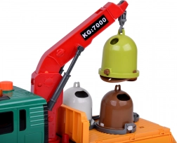 Set uključuje kontejnere za smeće koji se mogu skidati i njihovi poklopci otvarati, što djecu uči o važnosti razvrstavanja otpada.
