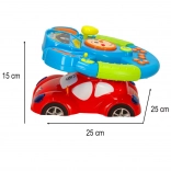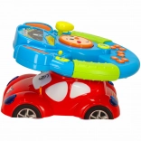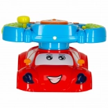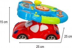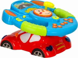 Volan je postavljen na crvenom autiću s vakuumskim čašicama na donjoj strani, što omogućuje njegovo čvrsto pričvršćivanje na različite površine. Idealno za kućnu upotrebu i za putovanja.