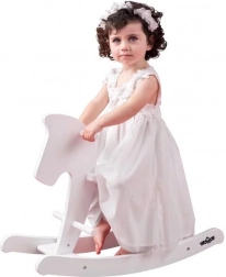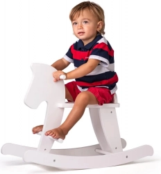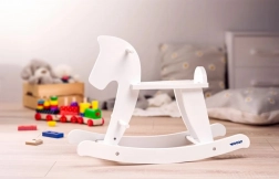 Otkrijte bezvremenski klasik za dječju sobu: bijeli drveni konjić za ljuljanje koji spaja radost kretanja i potporu prirodnom razvoju. Ljuljajući pokret pomaže razvijati ravnotežu, koordinaciju i grubu motoriku, dok niska visina sjedala (cca 28 cm) daje djeci sigurnost pri prvim vožnjama.