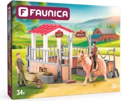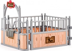 U setu ćete pronaći sve za brigu o konju: ogradu/nadstrešnicu, konja s jahačem, farmera s tačkama te sitne dodatke. Dimenzije konja 12 × 10 cm idealne su za dječje ruke.