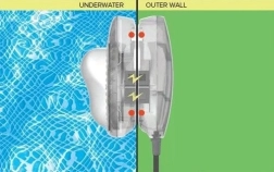 2. glatka promjena 4 boje LED zidno svjetlo za bazen koristi magnetsku tehnologiju za stvaranje rasvjetnog sustava koji sigurno generira električnu struju niskog napona kroz stijenku bazena do snažnog LED svjetla postavljenog unutar bazena.