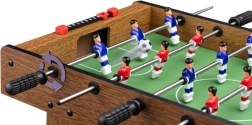 Zabava za cijelu obitelj s drvenim stolnim nogometom koji nudi izrađenu, izdržljivu MDF konstrukciju, kompaktne dimenzije 51 × 45 × 12,5 cm i sigurne zaobljene rubove. Zahvaljujući metalim šipkama s udobnim rukohvatima, ručnim brojačima i 2 loptice možete igrati u 2 do 4 igrača bilo kada kod kuće ili na putu.