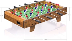 Ovaj drveni stolni nogomet donosi brzu, napetu i sigurnu zabavu za djecu i odrasle. Čvrsta konstrukcija od kvalitetnog MDF-a jamči dug vijek trajanja, dok zaobljeni rubovi štite tijekom igre. Zahvaljujući kompaktnim dimenzijama lako ga postavite na stol i pospremite kad ne igrate.