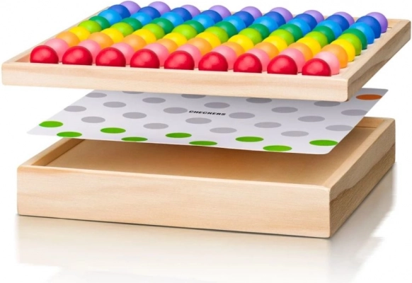 Svestrana drvena motorička igra koja spaja slaganje sličica, šareno SUDOKU i jednostavne društvene igre. Djeca vježbaju finu motoriku, prepoznavanje boja i logičko razmišljanje, dok izdržljiva drvena izrada i šarene kuglice jamče dugu zabavu za djecu od 3 godine.