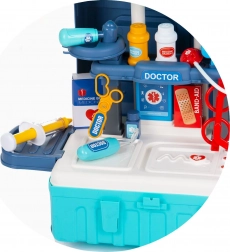 Dječji liječnički set 3u1 nudi sjajnu mogućnost da pretvorite kovčeg u mobilnu bolnicu ili liječnički stol. Ovaj multifunkcionalni set podržava razvoj maštovitosti i kreativnosti kod djece, a sve kroz zabavu.