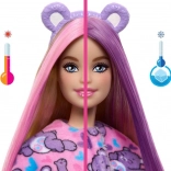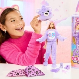 Plišani ljubičasti kostim ne samo da izgleda lijepo, već se može pretvoriti u stilsku jaknu za lutku. Velika medvjeđa glava dodatno se pretvara u ležaj za mini medvjedića.