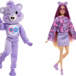 Lutka je skrivena u mekom, plišanom kostimu ljubičastog medvjedića Nježne srce – simbolu empatije i brige. Nakon skidanja kostima otkriva se prekrasna lutka s dugom kosom spremna za styling. Dijelove kostima lako pretvorite u stilsku jaknu, dok se medvjeđa glava mijenja u slatki ležaj za mini figuru CARE BEARS.