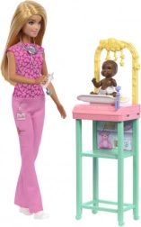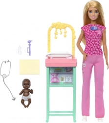 Otkrijte svijet medicinskih avantura s lutkom Barbie u ulozi pedijatrice! Ovaj set za igru uključuje Barbie lutku u ružičastoj liječničkoj odjeći i njezinu malu pacijenticu. Djeca mogu uživati u igri koja razvija vještine brige i prehrane.