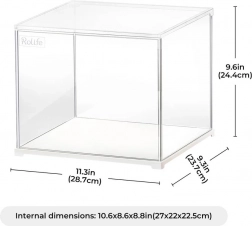 Dizajnirana je za minijaturne kućice serije DG (osim DG12). Unutarnji prostor 22 × 22 × 22,5 cm idealan je za većinu scena, dok vanjske dimenzije 28,7 × 23,7 × 24,4 cm osiguravaju stabilnost i zaštitu. Zahvaljujući pametnoj konstrukciji, vitrine je moguće slagati do 6 slojeva, čime se štedi dragocjen prostor na polici ili stolu.
