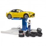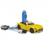 Ovaj promišljen set donosi djeci autentično iskustvo autoservisa. Mehaničar podiže roadster na visinski podesivu platformu, testira kočnice na priključenom uređaju, a rezultat se prikazuje na preglednom monitoru. Zahvaljujući novoj konstrukciji zamjene kotača, preobuvanje je pitanje trena – uključujući komplet rezervnih guma.
