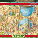 Zabavite se originalnim puzzleom iz serije Luda ZOO brenda HEYE, duhovito ilustriranim od Marina Degana. Motiv „Pustinjska izložba“ donosi 1000 dijelova punih detalja i humora. Pojedine motive iz serije možete slobodno kombinirati u jedan veliki ZOO, jer se rubovi slika glatko nadovezuju. Idealno za ljubitelje kvalitetnih puzzli, zabave i kolekcionarskih motiva.