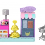 Ovaj detaljno izrađen mini supermarket nudi djeci mnoštvo scenarija igre: od punjenja polica s namirnicama, preko rada na blagajni s platnim terminalom, do slaganja robe u hladnjak koji se otvara i pregledne prezentacije na rotirajućem stalku. U kompletu je i kolica za kupnju prilagođena veličini mini lutke.