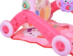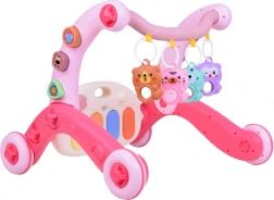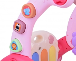 Interaktivni panel s tipkama, melodijama i zvukovima potiče istraživanje i razvija sluh i kreativnost. Široka konstrukcija guralice, gumeni kotačići i zaobljeni rubovi osiguravaju sigurnost i stabilnost pri vježbanju stajanja i hoda. Sastavljanje je brzo i bez alata, pa se možete odmah baciti na igru.