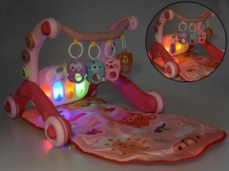 Multifunkcionalni set 3u1 raste s vašim djetetom: od udobne igre na mekanoj dekici, preko otkrivanja zvukova na svjetlećem klaviru, pa sve do prvih koraka sa stabilnom guralicom. Šarene viseće igračke i pastelne kocke za sorter potiču hvat, koordinaciju oko–ruka te prepoznavanje oblika i boja.