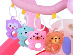 Slatki zvečkasti prstenovi sa životinjicama potiču na pružanje ruku, jačaju finu motoriku i koordinaciju oko–ruka.