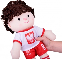 Ova mekana lutka nogometaša u bojama Poljske odmah će postati omiljeni prijatelj malih igrača i navijača. Stilski dres s orlom na prsima i brojem „9”, sportske tenisice i smeđa kosa daju lutki autentičan izgled. Odlična je za igru uloga, potiče maštu i finu motoriku.