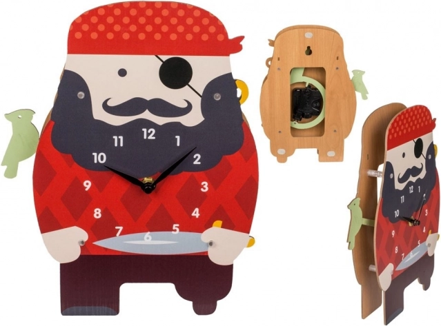 Smiješni zidni sat u obliku gusara sjajno će obogatiti svaku dječju sobu. Izrađen od drvene ploče i idealan za dječake i djevojčice.