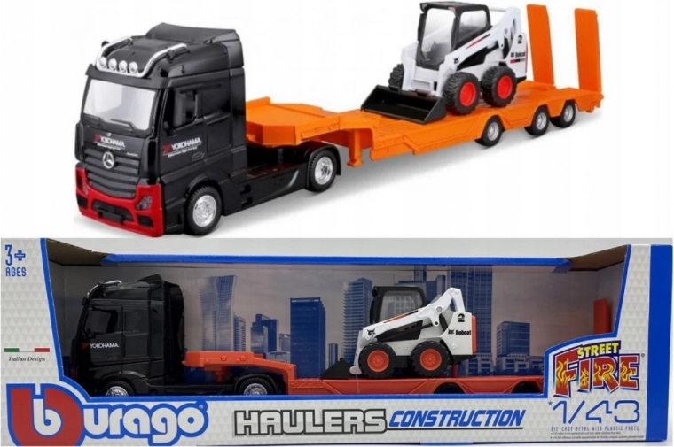 Otkrijte detaljno izrađen metalni kamion marke Bburago. Ovaj model u mjerilu 1:43 predstavlja Mercedes-Benz Actros Gigaspace u tipičnom dizajnu za građevinske svrhe, dopunjen utovarivačem Bobcat. Idealan je za male i velike entuzijaste modela vozila.