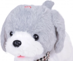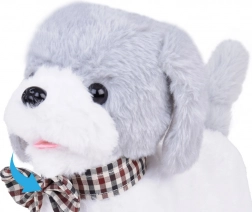 Bijelo‑sivi psić s kariranom leptir-mašnom izrađen je od iznimno mekanog materijala, savršenog za maženje i svakodnevnu igru.