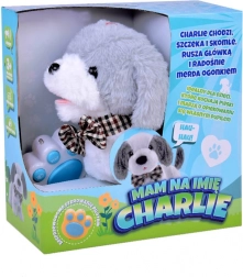 Slatki interaktivni psić Charlie u bijelo‑sivoj boji s elegantnom leptir-mašnom zna hodati, lajati, cviliti i mahati repom. Izrađen je od mekanog pliša za maženje, a zahvaljujući daljinskom upravljaču u obliku šape lako pokrećete zvukove i pokrete. Sjajan je prijatelj za djecu koja žele vlastitog ljubimca.