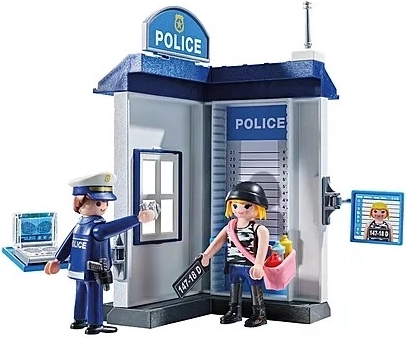 Ovaj kreativni set iz serije Playmobil Action Heroes donosi autentično policijsko okruženje s ispitnom sobom, gdje djeca mogu odigrati prizore policajca i osumnjičenog. Zahvaljujući domišljatim dodacima, poput prijenosnog računala, kamere i prometnih čunjeva, svaka je igra puna napetosti, priča i otkrivanja.