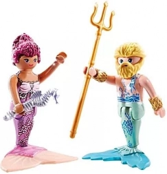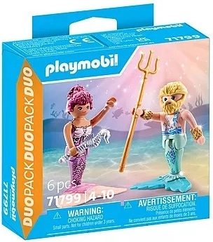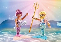 Otkrijte čarobni podvodni svijet s igraćim setom Duo paket morske vile od PLAYMOBIL-a. Dvije detaljno izrađene figurice – morska vila i morski muškarac s trozupcem – potiču kreativnu i maštovitu igru, imaju zamjenjive dijelove i živopisne boje. Idealan poklon za djecu u dobi 4–10 godina.