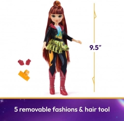 Uđite u svijet Akademije jednoroga s ovom lutkom visine 23 cm, nadahnutom animiranom serijom i omiljenom knjigom. Lutka Valentina detaljno je izrađena i njezina zabavna osobnost ogleda se u crvenoj, narančastoj i žutoj kosi, koju možete češljati pomoću priloženih dodataka. Na sebi ima stilsku jahaću odjeću s crnom jahaćom jaknom, kariranom suknjom, jahaćim hlačama s oznakom Vatra magije, crvenim čizmama s metalnim zakovicama i jahaćim rukavicama.