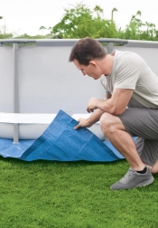 Zaštitna podloga Bestway pouzdana je osnova za svaki nadzemni bazen. Djeluje kao barijera između terena i bazenske folije, čime se smanjuje rizik od pucanja ili habanja te istodobno poboljšava toplinska udobnost vode zahvaljujući dodatnoj izolaciji.