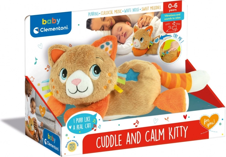 Mekana plišana mačkica CLEMENTONI BABY s vibracijama, glazbom i bijelim šumom za mirno uspavljivanje. Periva na 30 °C, uključujući probne baterije.