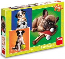 Ovaj set donosi trostruku dozu zabave: tri odvojene slagalice s veselim motivima pasjih sportaša. Zahvaljujući čvrstom i sigurnom kartonu, dijelovi su ugodni na dodir i dobro se uklapaju, što potiče strpljenje, logičko razmišljanje i finu motoriku.