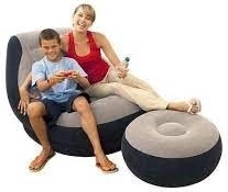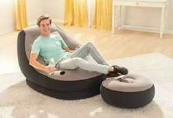 Udobna napuhavajuća fotelja s podnožjem idealna za kućnu i vanjsku upotrebu. Omogućuje uživanje u trenucima odmora uz maksimalnu udobnost.