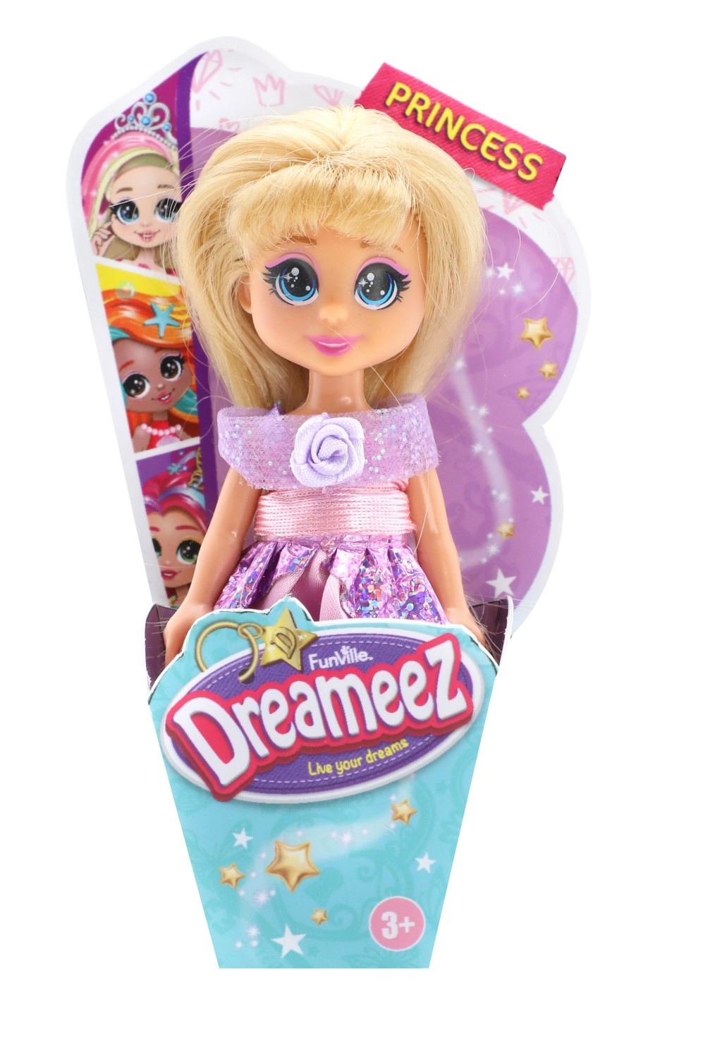 Dreameez mini princeza u kornetu idealan je pratitelj za male ljubitelje bajki. Ova preslatka lutka visoka je približno 12 cm i odjevena je u elegantnu princezinu haljinu. Ima dugu kosu koju djeca mogu češljati i uređivati prema vlastitoj mašti, što pruža sate kreativne zabave.