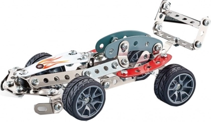 Sastavite vlastiti trkaći automobil od čvrstog metalnog seta za sastavljanje s 146 dijelova. Dijelovi od metala i plastike spajaju se pomoću vijaka i matica, pa je gradnja jednostavna, zabavna i ujedno izazovna za male i velike konstruktore.
