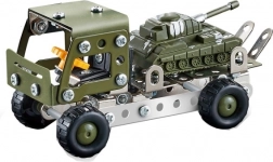 Ovaj metalni komplet omogućuje vam stvaranje jedinstvenog vojnog automobila s tenkom. Set sadrži kombinaciju metalnih dijelova i plastičnih dodataka, koji se spajaju pomoću vijaka i matica. Dizajniran je da bude jednostavan za izgradnju, zabavan, a istovremeno predstavlja izazov: