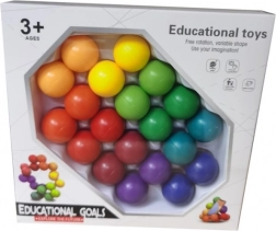 Set šarenih spojivih loptica služi kao zabavna i poučna konstrukcijska igračka. Svaka se kuglica slobodno okreće i jednostavno povezuje s ostalima, pa djeca mogu stvarati originalne oblike, lance i 3D modele. Igra prirodno trenira koncentraciju i logičko razmišljanje, a ujedno razvija maštu.