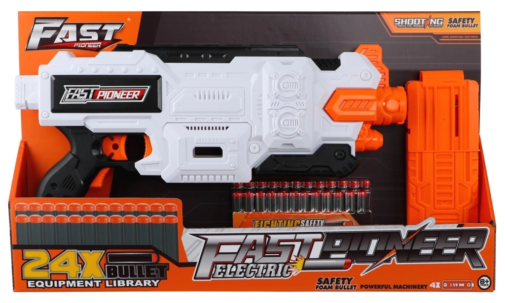 Brzinski blaster na baterije s dometom 10–15 metara savršen je izbor za akcijske igre! Ovaj blaster nudi ne samo odličan domet, već i brzu paljbu, što ga čini idealnim oružjem za svaku igraču avanturu. Glavne značajke proizvoda: Uživajte u satima zabave s ovim brzim i pouzdanim blasterom koji će oduševiti i djecu i odrasle.