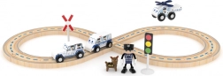 Dio pakiranja su tračnice i 4 policijska vozila koja se mogu slobodno kombinirati i uklopiti u tematske priče. Set je kompatibilan s uobičajenim drvenim željezničkim prugama, pa se može nadograđivati dodatnim elementima i stvarati veće trase.