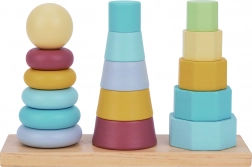 Tri kule brenda Tooky Toy donose djeci zabavu i učenje u jednom. Pastelni oblici lako se hvataju, slažu na drvenu bazu i omogućuju djeci otkrivanje boja, oblika i veličina. Idealno kao prva edukativna drvena igračka za dječju sobu.