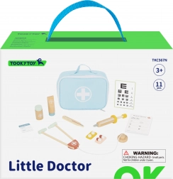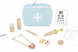 Stetoskop, toplomjer, štrcaljka, tablica za vid i druge pomagala od kvalitetnog drva podržavaju sigurnu i maštovitu igru.
