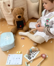 Stilski dječji liječnički kofer skriva sve što malom doktoru treba za brigu o svojim plišanim pacijentima. Set potiče igru uloga, uči empatiji i smanjuje strah od posjeta ordinaciji. Svi dijelovi izrađeni su od kvalitetnog drva i bojani sigurnim, netoksičnim bojama.