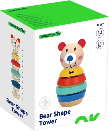 Preslatka drvena slagalica u obliku medvjedića marke TOOKY TOY oduševljava šarenim oblicima raznih veličina i sigurnom izradom. Djeca od 12 mjeseci vježbaju finu motoriku, koordinaciju oko–ruka te prepoznavanje boja i oblika. Glatko drvo bez oštrih rubova i netoksične boje jamče sigurnu i radosnu igru.